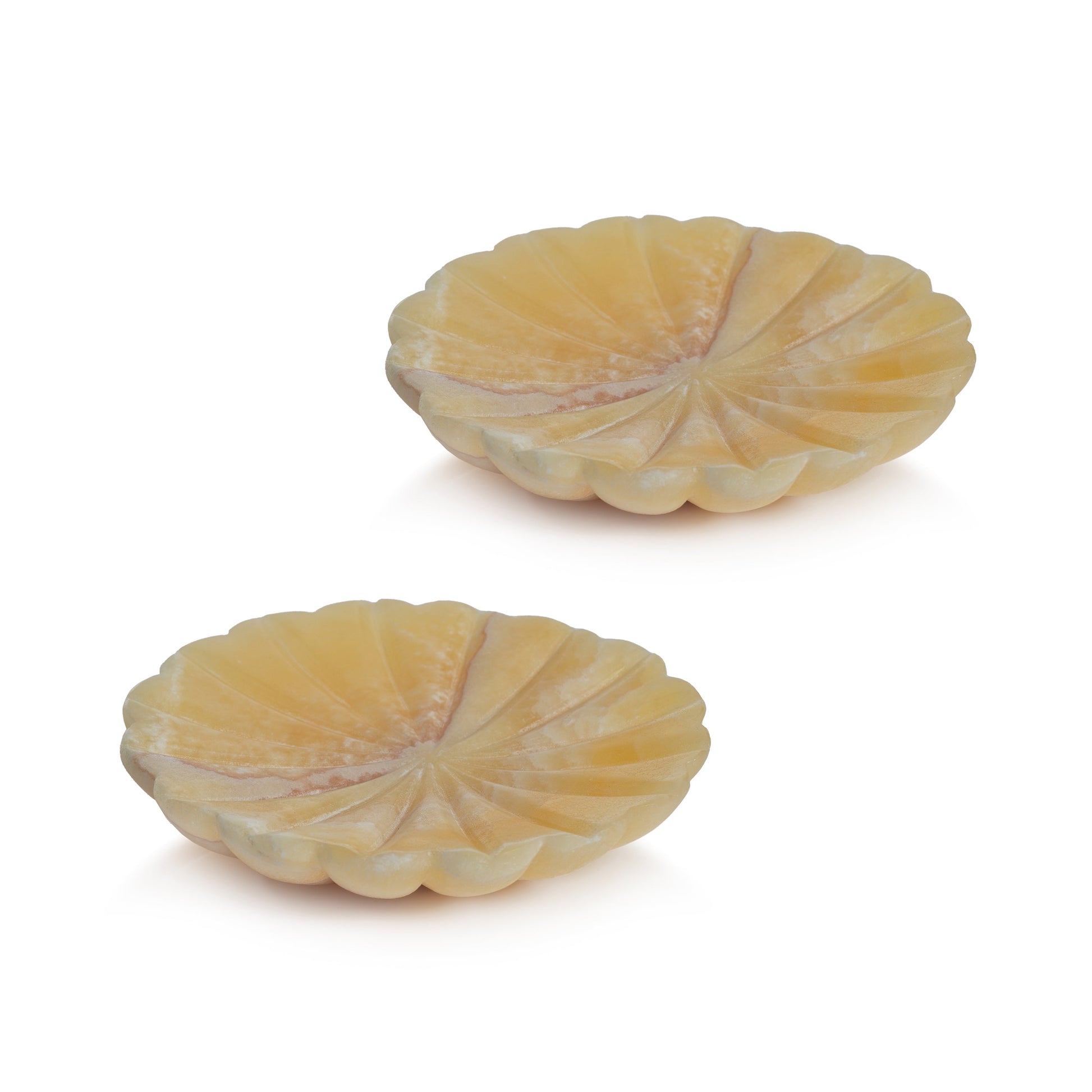 Zodax Kara 2-Piece Flower Marble Decorative Dish Set, Amber, Amber